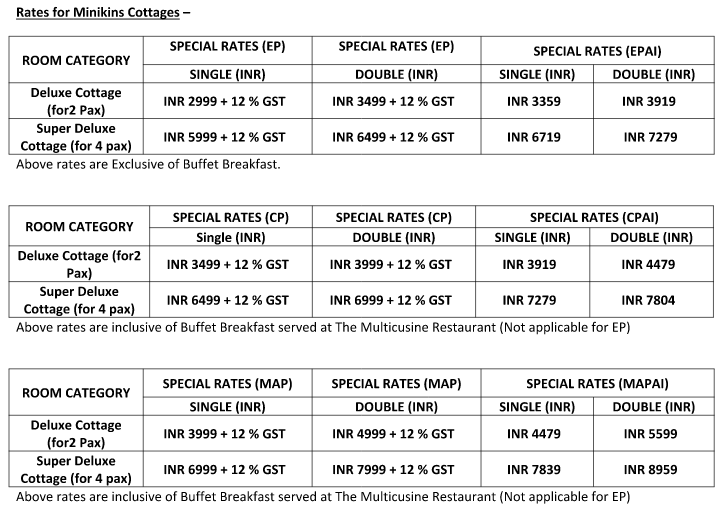 - 6% CGST and 6% SGST will be applicable on Room accommodation (All Prices are in INR).